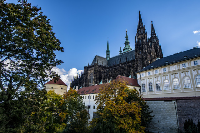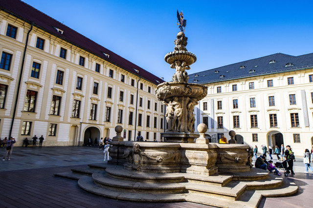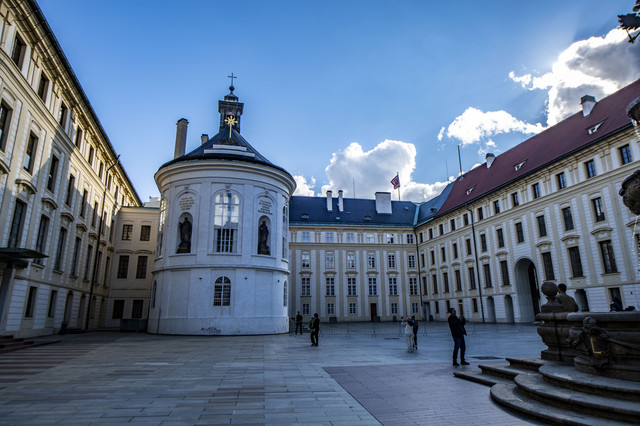 布拉格城堡,位于捷克伏尔塔瓦河的丘陵上,是捷克的要塞,在公元第九世纪时布拉格王子在伏尔塔瓦山上盖了一座城堡。布拉格城堡有多样化的建筑风格,从古代的罗马式地基,到战争期间的后现代风格,每个年代的风格都或多或少在城堡上留下了痕迹,是捷克较吸引人的游览胜地之一。城堡过去是皇帝、国王的宫殿,如今是捷克总统为外国元首来访举行欢迎仪式和接受各国大使递交国书的地方。站在城堡上眺望整个布拉格市,美景尽收眼底。城堡内有三个庭院、几条古老街巷、画廊、花园,以及捷克较大的哥特式教堂--圣维特大教堂(始建于1344年)。