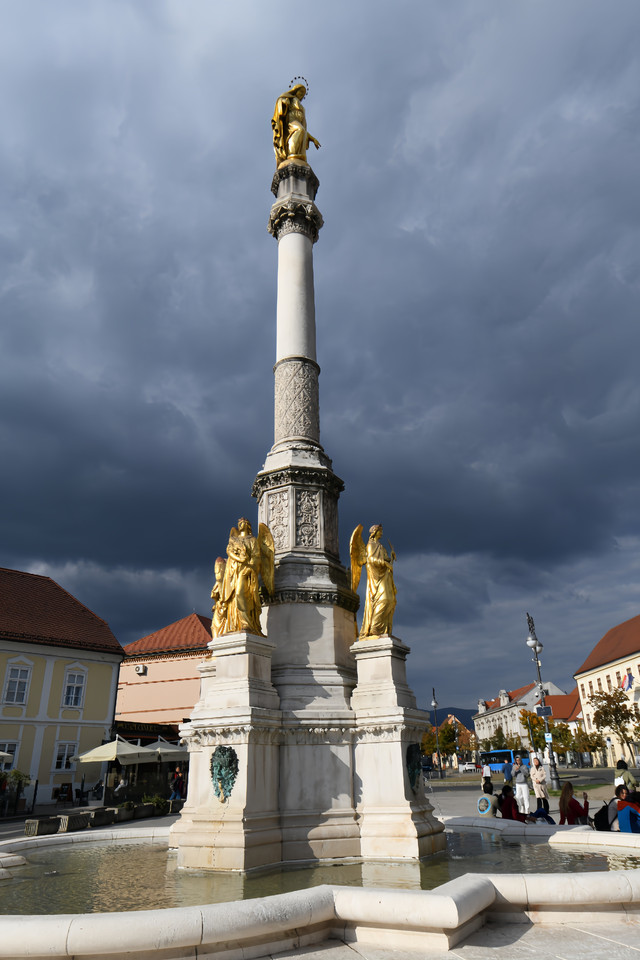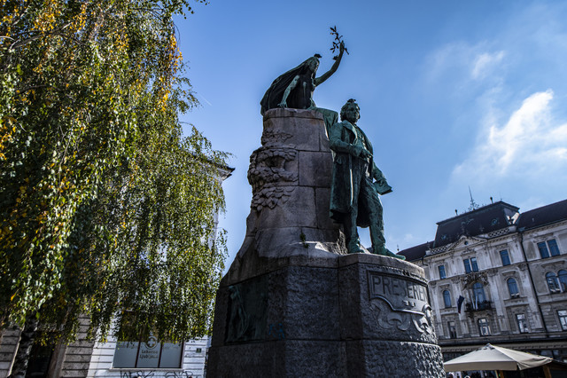 城市广场,是卢布尔雅那的中心广场,广场不是很大,中间是建于1751年的巴洛克式的卡尼鄂拉喷泉,方尖碑式的柱体底座上,雕塑着三组精美的大理石雕像,据说它们分别代表着斯洛文尼亚的三条河流:萨瓦河、克尔卡河和卢布尔雅那河。