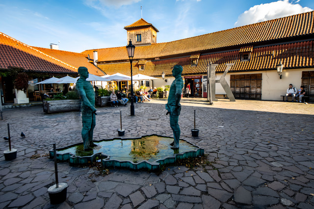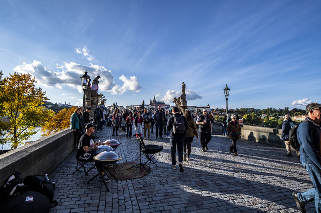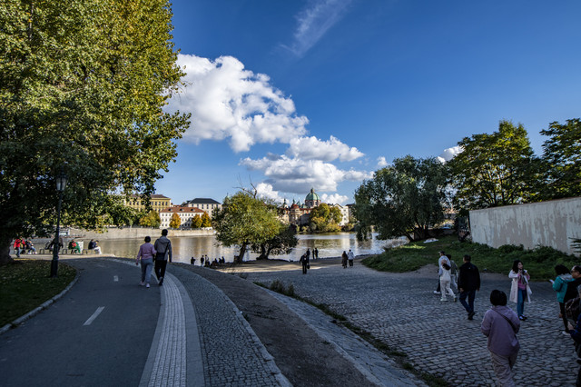 伏尔塔瓦河是捷克的母亲河,发源于波希米亚西南的森林,捷克交响诗套曲《我的祖国》中的第二首交响诗就是描绘这条河的如画景色。美丽的伏尔塔瓦河将布拉格城一分为二,东岸是老城和新城,西岸是小城。横跨在河上有十几座或古老或现代的大桥,将两岸城区联为一体。其中要数连接布拉格老城与小城的查理大桥,桥上两侧装饰着各种雕塑和浮雕,被誉为“欧洲的露天巴洛克塑像美术馆"。我们沿着伏尔塔瓦河岸边漫步,欣赏两岸的中世纪古城风光,大家喂鸽子的时候,还偶遇了布拉格小网红“河狸”。