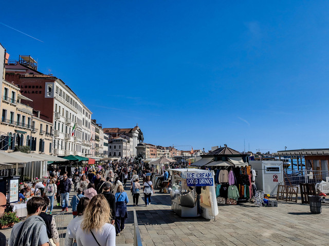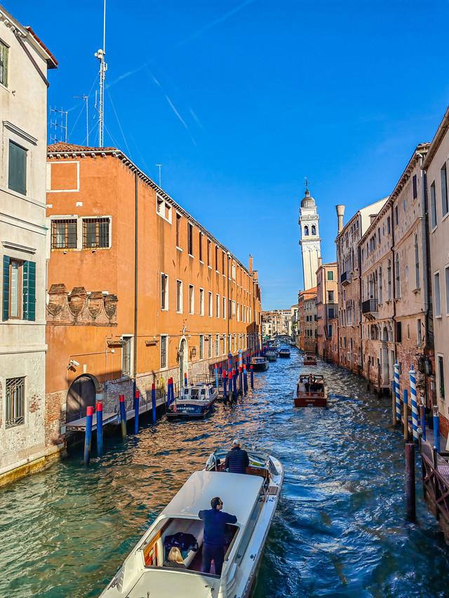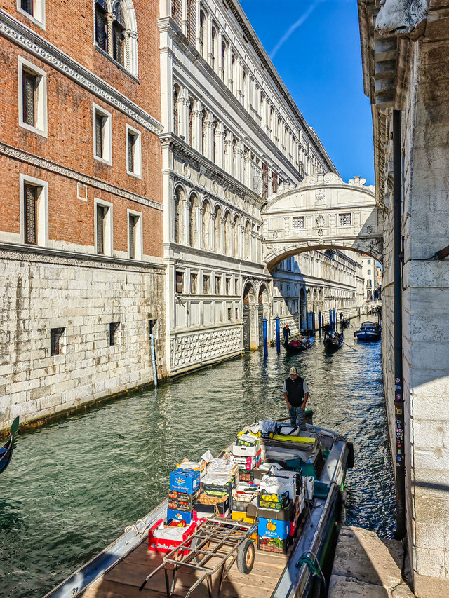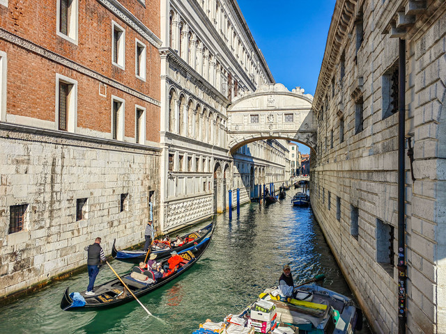 威尼斯是一座很独特的城市,开门见水,以河为街。城中除了建筑物和广场外,几乎看不到陆地。威尼斯没有马路,没有汽车,没有红绿灯,只有弯弯曲曲的水道,来来往往的船只,以及400多座风格迥异的桥梁。船是威尼斯人必备的交通工具。
