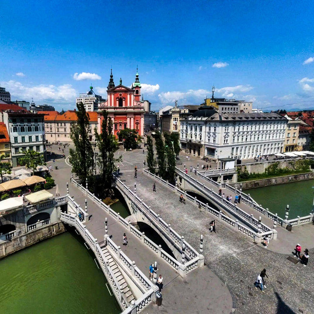 三桥,又称三重桥,建于13世纪,是卢布尔雅那的标志性建筑,横跨卢布尔雅那河。建筑师约热·普列奇尼克在原有桥体两侧增设行人副桥,形成今日的三桥格局 。主桥为巴洛克风格桥梁,两侧副桥为普列奇尼克的现代设计,体现人车分流理念 。桥墩雕刻20尊石像鬼,雨天部分雕像会渗水,增添神秘感 。三桥是卢布尔雅那必打卡景点,与卢布尔雅那城堡、布莱德湖等同列斯洛文尼亚热门旅游地标 。桥头延伸至中央市场,连接历史与现代商业区 。