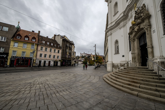 双重运动纪念碑座落在一条老街的中心,据导游介绍,奥匈帝国(1867一1918)统治匈牙利时,匈牙利人民掀起了反抗奥匈帝国的运动;当时斯洛伐克属匈牙利,斯洛伐克人又掀起反抗匈牙利的运动,为纪念这一段历史,特设置了“双重运动”纪念碑。
