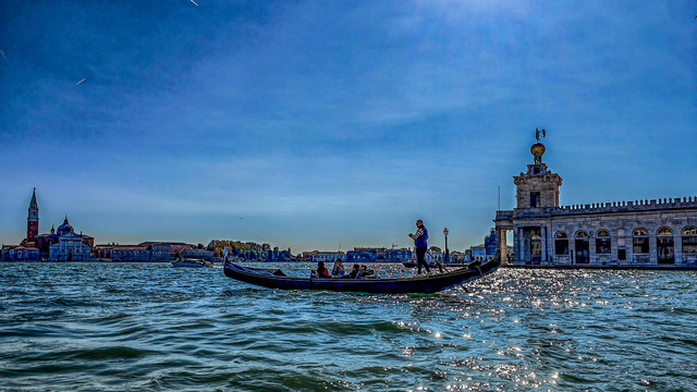 贡多拉游船之旅,贡多拉又名“公朵拉”,是独具特色的威尼斯尖舟,细细的船体和平平的船底特别适合威尼斯又窄又浅的运河,船首微微向左倾斜,抵消了船桨的重量,可以避免贡多拉在原地转圈。根据1562年制定的法律,所有的贡多拉要漆成黑色,以免人们炫耀自己的财富。只有在特别的场合贡多拉才能被装饰成花船。这种轻盈纤细、造形别致的小舟已有一千多年的历史,它一直是居住在泻湖上的威尼斯人代步的工具。
