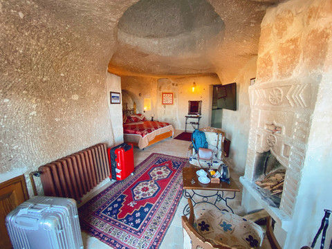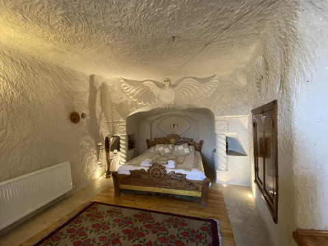 而其中最有特色的便是修建在其中的洞穴酒店了。我们此行居住了两家洞穴酒店,分别为旅行者洞穴酒店(小型套房666元/晚)