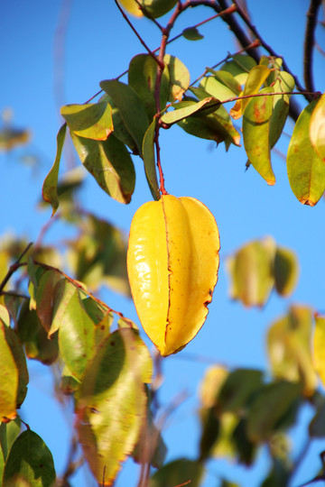 杨桃,旺季已过,漏网之桃,敢摘,腿打折。