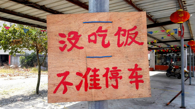 忽然想起,前两天路过江田,有家饭店挂牌上写着“没吃饭,不准停车”。