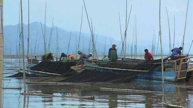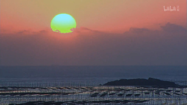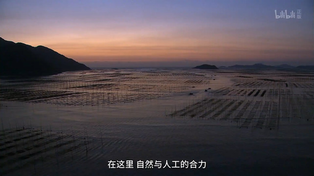 比如 “时间的味道”那集, 福建沿海种植紫菜的热闹场面出镜,旁白适时响起:“在阳光的折射下,散金碎玉一般闪耀的海面上,影影绰绰的毛竹和棚架之间,游动着船帆与人影。”