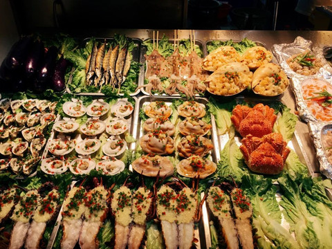每到夜幕降临,霞浦 太康路的美食大排档就成了 海洋生物的博物馆。码放在冷柜中的七百多种海鲜,吃上半年都不会重样。
