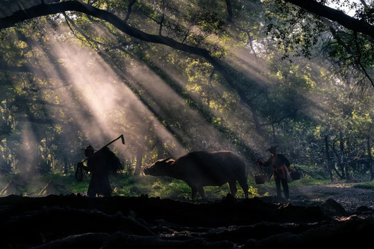 在 杨家溪,千年古榕遮天蔽日,光影只得从树叶的缝隙中抖落下来。让路过此景的农夫,都拥有了朦胧曼妙的剪影。