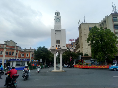 我们回到城里,看到一处地表性建筑钟楼,周围在改造,呈现旧时骑楼式模样,过几年来,更好看了。