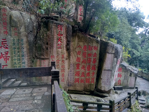 沙县到福州高铁不到1小时就到了,福州的火车站是我去过的最有序,最为旅客着想的车站,不一会我们就找到了要乘的公交,不一会就到了住地,住下后就上了去鼓山景区的公交,中午就到了涌泉寺。这里峰岩秀拔,峡谷幽雅,古树名木郁郁葱葱典型的峡谷如喝水岩、灵源洞等鼓山刻石。上起北宋,下迄清代以至当代,前后延续近千年,内容丰富,字体隶、行、草、楷俱全,是福建古代石刻最多最集中的地点,堪称福州碑林。