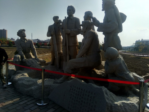 这处雕塑展现的是毛主席当年带领大家开井的情景。