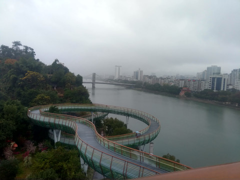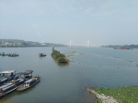我们站在北门前的八景台上看到章水与贡水在此汇合成赣江。从大桥下流过。