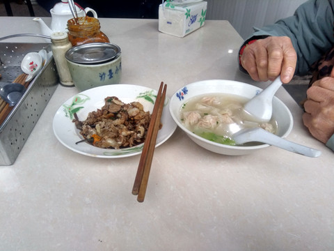 而就在住处不远的菜市场边,吃到了不错的小吃,当时已吃饱了,随点了扁肉和拌肉共17元,很是不错。这说明这里的小吃确是价廉物美,沙县住了2天,把这里网红的小吃店都吃遍了。这里的住宿也是最满意的,以后有机会还会再来的。