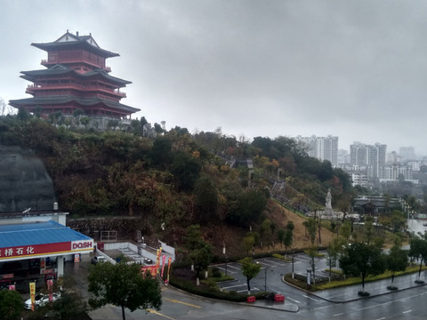 在于都江边的一座山上,新建了一座宝塔,很是雄伟。原塔是宋朝的重光宝塔,是人们登高望远、眺望于都市景的最佳地。下图是山下的于都江,两岸就是于都市,建设得很好。