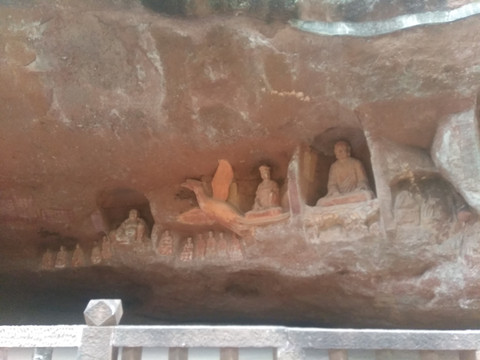 这是广福寺,寺内有一藏经洞,有几位僧人在做法事,其声传得很远,我以为有扩音器,走近看是没有的,半开放的岩壁就是个天然的大喇叭。后山上有几处摩崖石刻,据说是唐宋年代的很是珍贵。