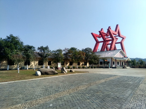 我们一早就从于都到了瑞金,住在市中心,到各景点方便些。瑞金是“红色故都”、共和国摇篮,我们准备去叶坪、沙洲坝还有罗汉岩。看看时间还早,我们步行去了红军博物馆,结果吃了闭门羮,在维修,就在周围看看了,这里有不少毛泽东的名句。