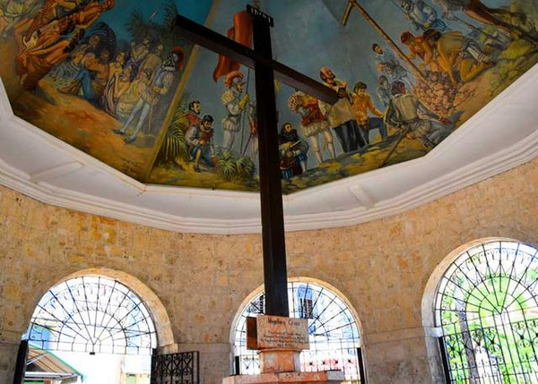 为了纪念这场盛大的宗教仪式,麦哲伦在菲律宾宿务竖立了这座著名的十字架。站在十字架下仰望上面的穹顶,一幅幅色彩斑斓,惟妙惟肖的油画作品,生动真实地记录了这段难忘的历史。
