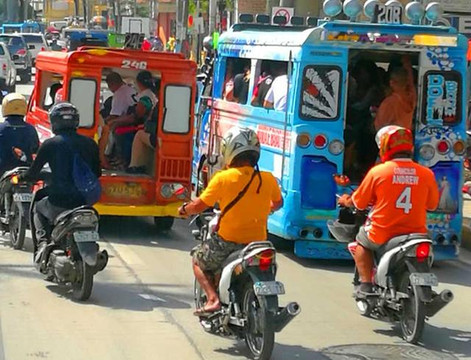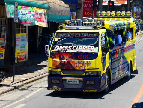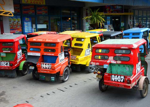 驱车行驶在薄荷岛上,记者发现此地的交通工具以小三轮为主,吉普尼虽有,但相比其它地方少一些。在菲律宾宿务街头跑的公交车主要有两大种类,一个是叫吉普尼,双人对座能乘14个人左右,有时人多还有在后面扒着车厢的站票。有的车上还装有音响,在行进中放着动感十足的音乐。另一种是摩托车加挎斗,两排能乘四个人。吉普尼票价8比索很便宜,相反摩托挎斗由于速度快,乘人少票价高于吉普尼,要20比索一位。按1:7的比例,前者一张票不足1元,后者1.4元人民币左右。