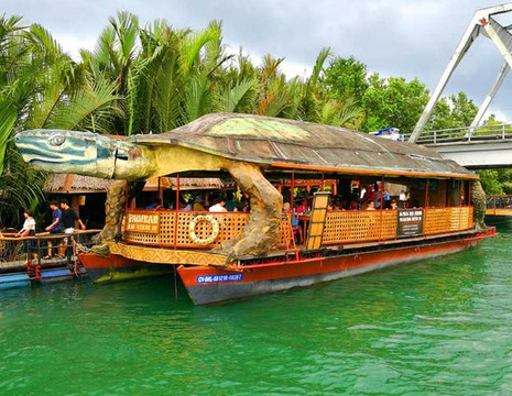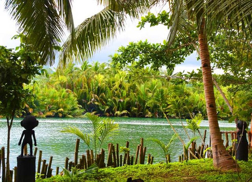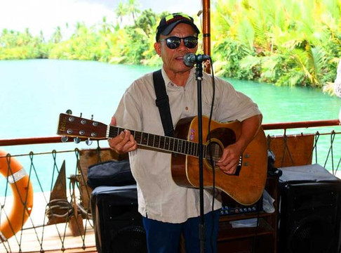 团队驱车在岛上行驶了大约半小时左右来到罗泊河码头。团友们开始乘船泛舟罗泊河,尽享热带雨林风光。随着游船的离岸,船上的音乐午餐,在当地乡民木吉他弹唱下那粗犷动人的原生态放歌的音乐旋律中同步而行。