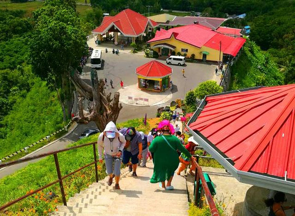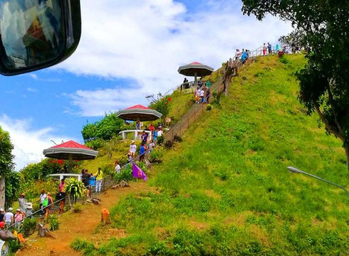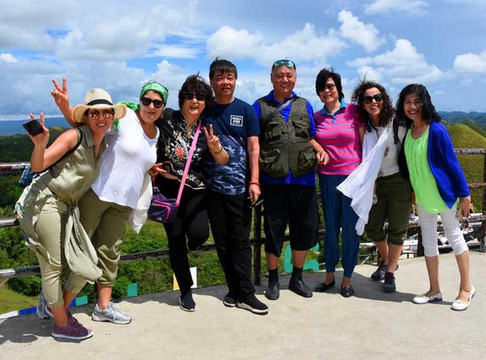 来到景区,只见这里有着一片游览区服务设施位于宽阔的停车场一侧,服务区内有饮料、食品及各种工艺品的小店组成。这里也正处于巧克力观景平台的山脚下。团友们从这里登上大约230级石阶,即可抵达山顶观景平台,俯瞰环顾四周,独特的山形地貌尽收眼底,令人称奇。