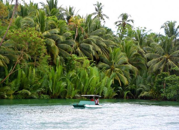 离开土著村落重新登船泛舟罗泊河,坐在船头或俯瞰或远眺,只见这里的水质黄中泛绿,与碧蓝的海水完全不可同日同语,却因此承载了浓浓的生活片段,散发出让人沉醉,浓浓的原生态气息。