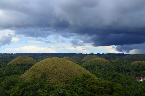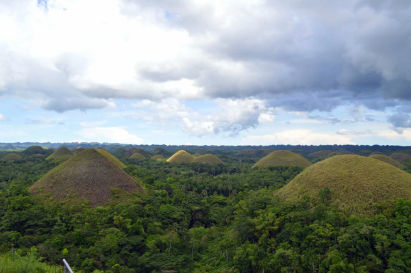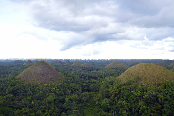 巧克力山,是由1268个圆锥形小山丘组成的小山丘,当草色变成干枯状的时候就像一排排的巧克力放在大地上,巧克力山由此而来。