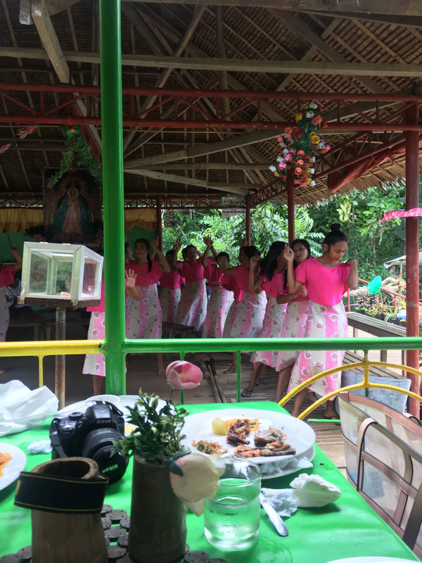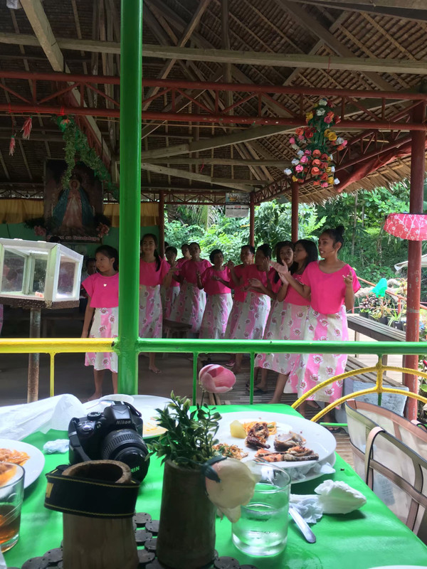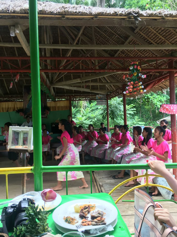 已经接近中午了,司机带我们去博纳河乘船吃自助午餐。在吃午餐的同时岸边上的菲律宾土著会开始他们的表演,只需要给点小费他们就会很开心。