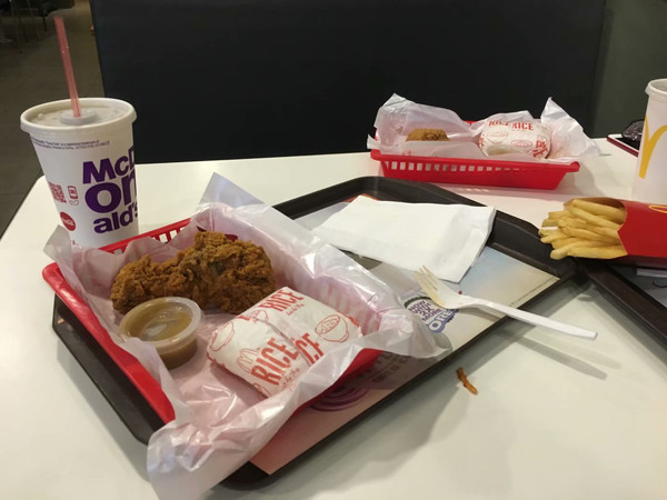 我明明点的汉堡,结果给我上个米饭饼是什么个意思,excuseme WHT这是什么鬼。还是那句老话,出了四川我就觉得我会被饿死。
