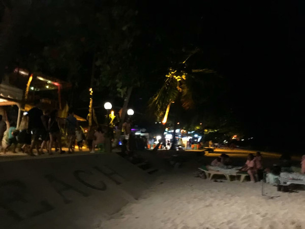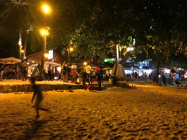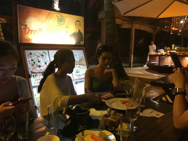 晚上回到邦劳岛沙滩吃完自助餐,大家自娱自乐起来。有共同文化和语言是要好沟通。