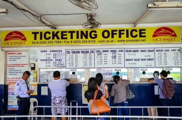 换完船票后还得购买环境保护税20P一人,有箱子的行李必须托运(感觉好像针对的外国人)50P一位。船票可以不用提前预定,每天几个公司的航班有很多,只要不是菲律宾国内的大假都可以不用预定的。