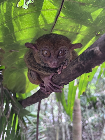 菲律宾眼镜猴是世界上体型最小的灵长类动物之一,眼睛只能直视,不能转动。所以他们看东西总是要转头,小脑袋可以旋转180度。它们没有窝,睡觉就紧抱住直立的树干,因为是夜行性树栖动物,所以白天休息,晚上出没觅食!