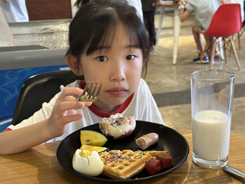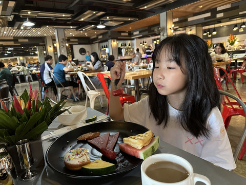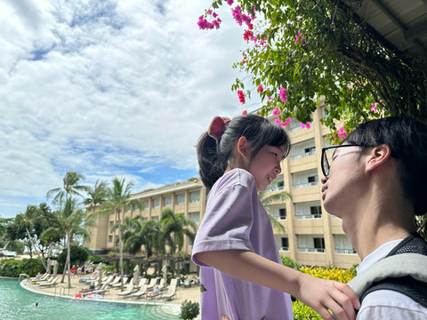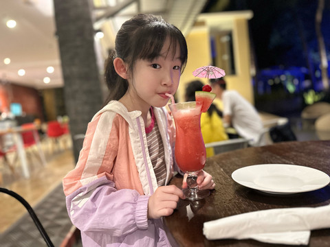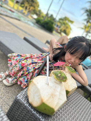 在外浪了半天,下午回酒店休息。去泳池泡泡,宝宝泡泳池,还认识了一个韩国的小姐姐,两人用蹩脚的英文加国际通用手势交流,小姐姐还教她游泳呢。真可爱!