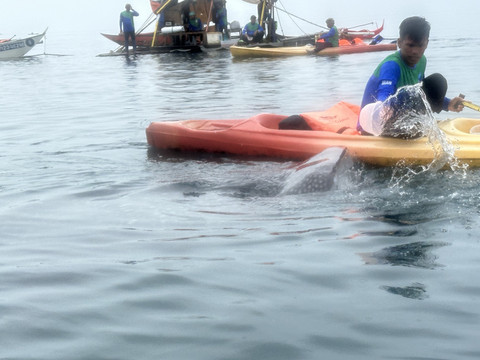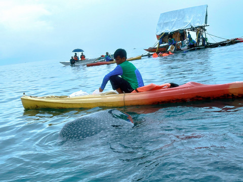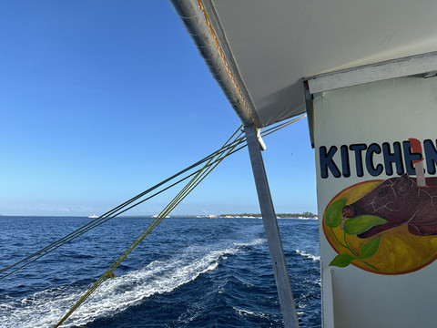 DAY7,最后一天竟然下雨了,今日安排是要出海去看鲸鲨和浮潜。可惜天公不作美,注定不美好了。黑压压的天,灰蒙蒙的海,大家都不想下水,就坐船上看看就行了。