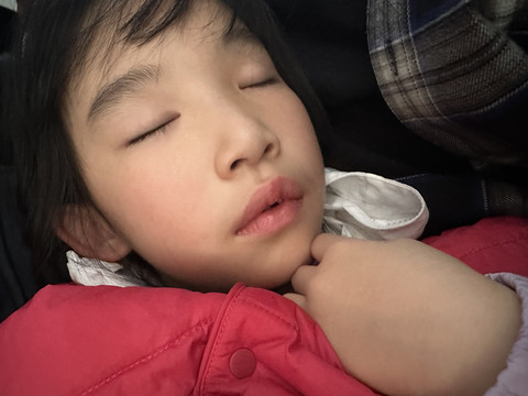 开心享受飞行时间啦。大概4个多小时接近5小时的飞行时间,宝宝还睡得比较好。