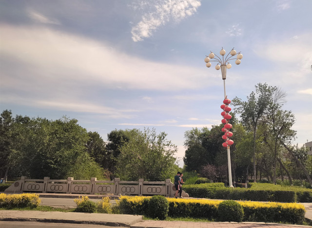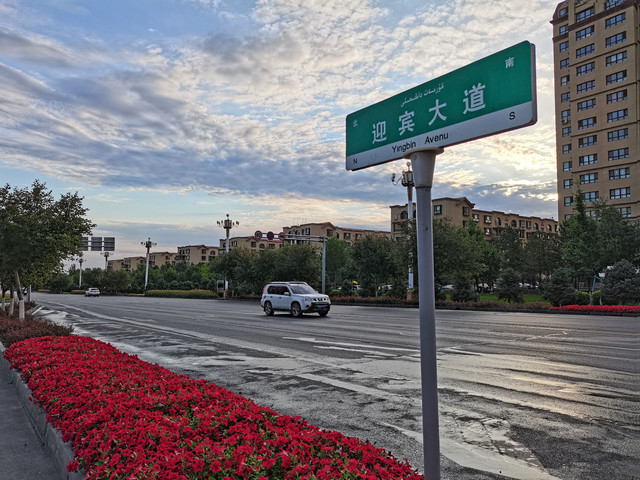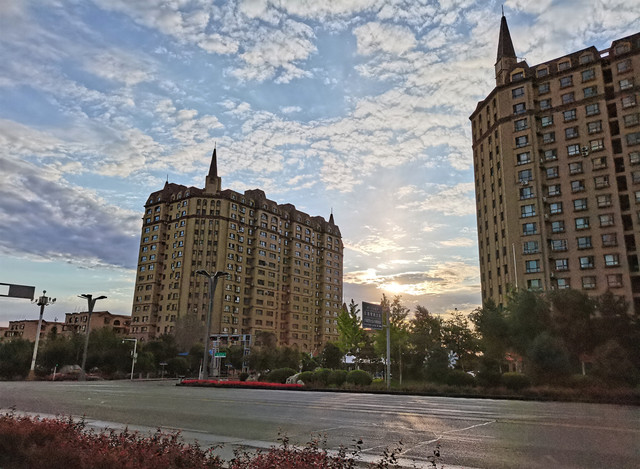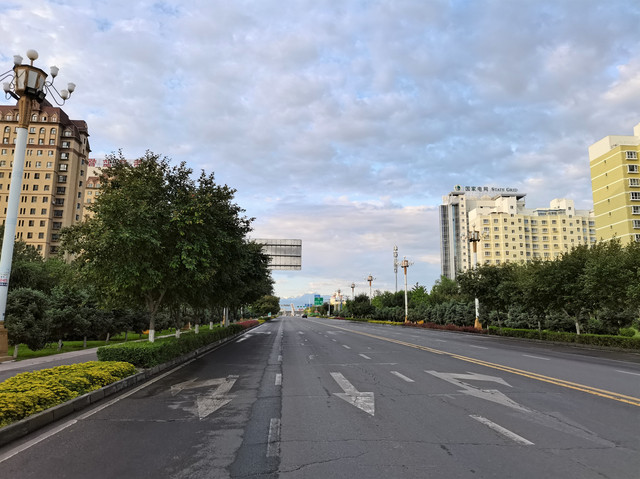 将近早7点半外出散步,这个时点在新疆足够早,天虽然亮了,但街上空空荡荡,不见行人,偶尔驶过一辆车。