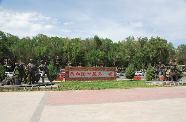石河子,地处天山北麓中段,准噶尔盆地南部,东距乌鲁木齐150公里。 石河子是自治区直辖县级市,与生产建设兵团第八师实行师、市合一管理体制,全称应为-新疆生产建设兵团第八师石河子市,由新疆生产建设兵团管理。 进入城里,司机说去加油,将我们放在军垦博物馆前。