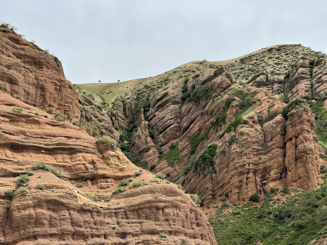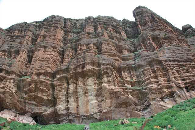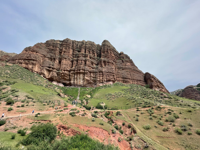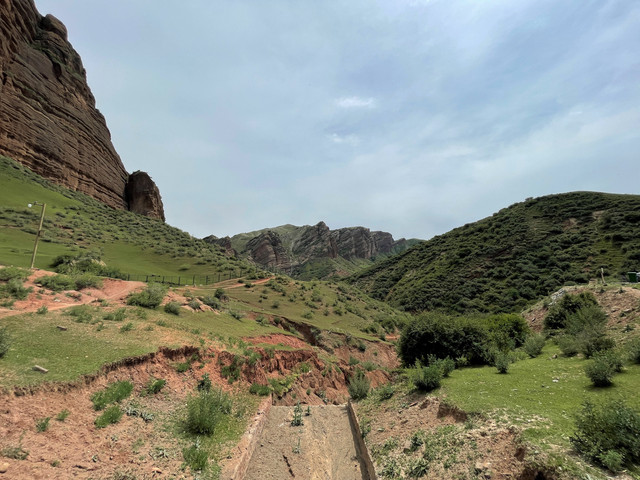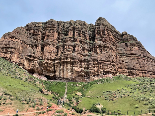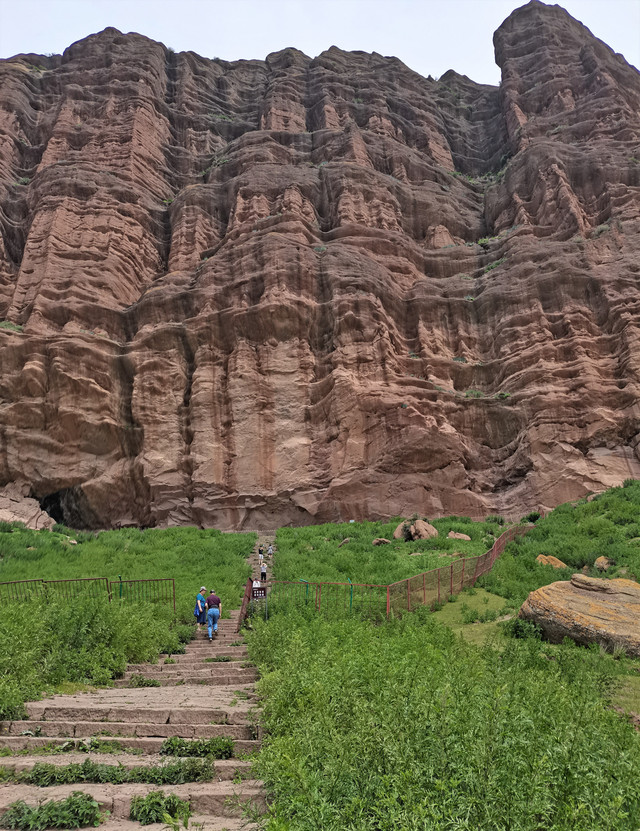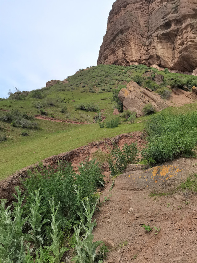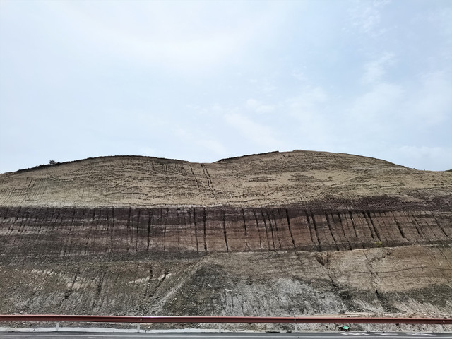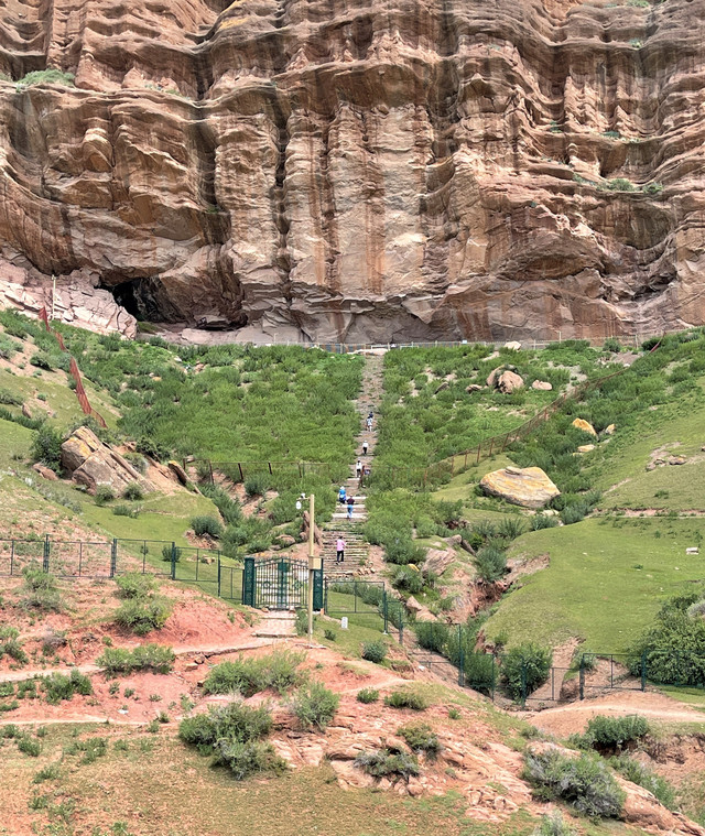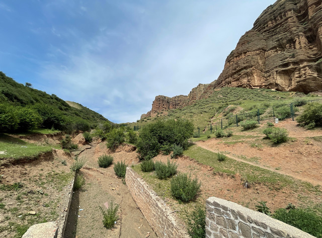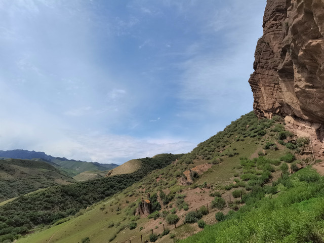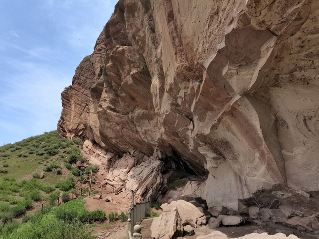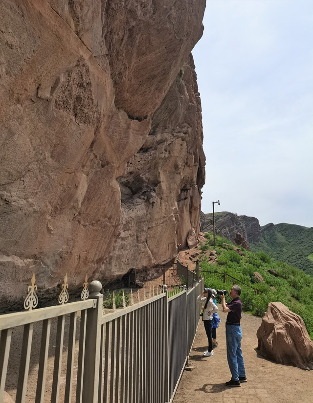 也就是1、2公里的距离,拐过几道弯后,一座高大雄伟的山体呈现在眼前,山腰处的岩壁上刻绘有古老岩壁画。