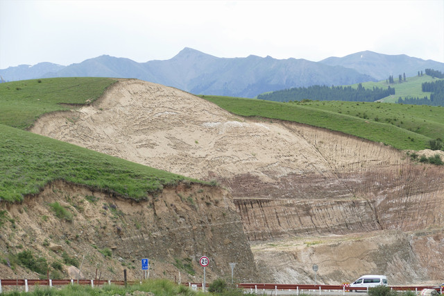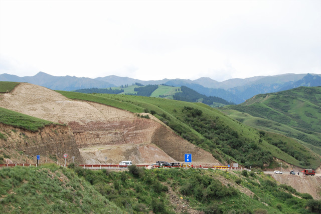 出康家石门子岩画景区,继续行驶在101公路,也就几公里的样子,前方停着一溜车,初以为是检查站,稍后晓得前面出现塌方,又是禁行。刚刚开始的天山地理画廊精彩之旅戛然而止,着实令人沮丧。