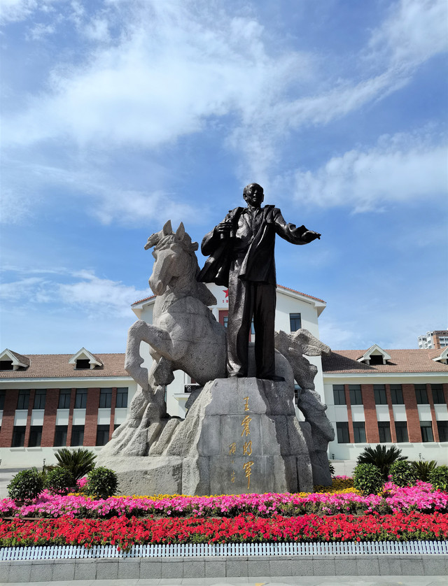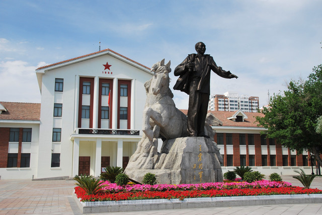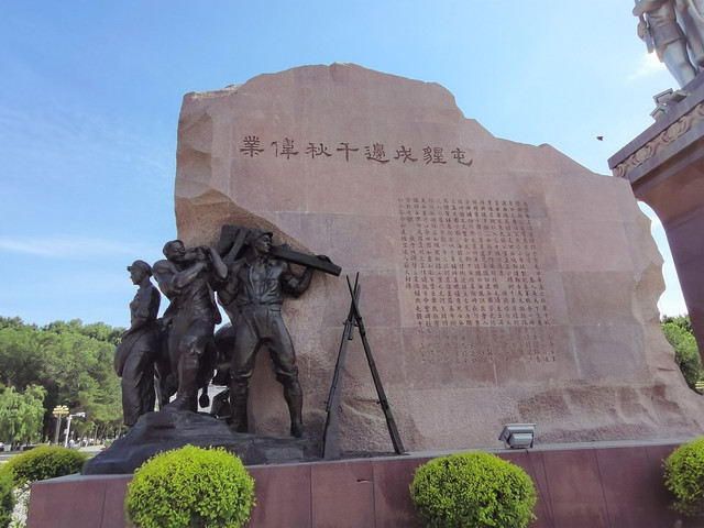 王震将军雕塑于1994年9月落成,由将军锻铜全身像和一匹花岗岩石马组成,整个雕塑高8.5米,象征将军享年85岁。