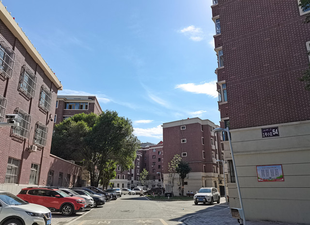 住宅小区旁的街道,绿荫蔽日,整洁干净。