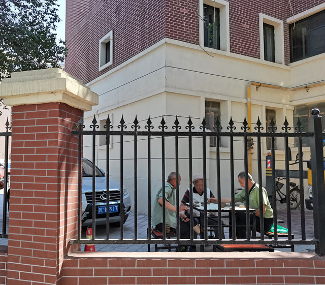 老哥儿几个在楼间空地下棋。