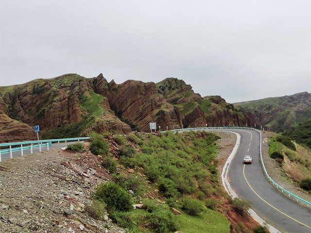 这边的山体颜色不那么鲜艳,但路面状况一览无余。