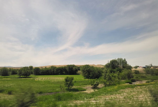 让司机停车几分钟,下车拍照。虽然停下车,司机颇不以为然,觉得这里没啥可看。当时不理解,随着行程逐步展终于明白,新疆的美景遍地开花,行车一路俯拾皆是,眼前的风景在新疆纯属一般,的确不算什么。