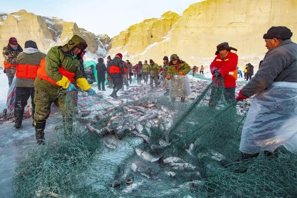 海上魔鬼城,这片十分罕见的雅丹地貌,就像一座飘浮在水面上的城堡,因此被当地人形象地称为“海上魔鬼城”。12月20日之后湖的表面已经冻的非常结实,跟着渔民们参观冬捕,一同分享这份丰收的喜悦。