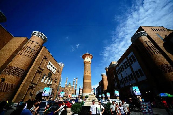 国际大巴扎——世界上规模最大的巴扎(巴扎为维吾尔语,意为集市)。具有浓郁的伊斯兰建筑风格,体现了浓郁的西域民族特色和地域文化,这里除了有令人眼花缭乱的商贸市场外,还有美食广场、观光清真寺、80米高的新疆第一观光塔等设施。