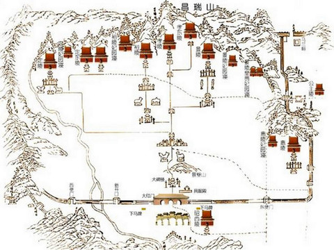 河北遵化的马兰峪一带,原本只是一处平凡的山间盆地。背靠连绵起伏的昌瑞山,前面如倒扣的金钟金星山,如持芴朝揖。西有黄花山为青龙,东有鹰飞倒仰山为白虎,东西两条大河环绕夹流似两条玉带,形成万山拱卫,众水朝宗之势。整个陵区如稳稳当当地坐在一个巨大的面北朝南的圈椅之上。明朝时的堪舆学家就发现了马兰峪昌瑞山一带是块做皇家陵园的“风水宝地”。但当时的明皇帝在北京昌平找到了比它更近的地方,故没有选择这里。