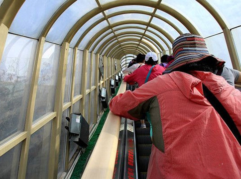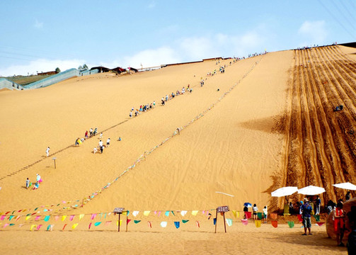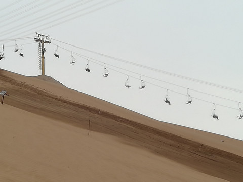 沙坡头的沙漠大扶梯,据说垂直高度有100米,是当时国内首屈一指(已被张家界天门山的穿山扶梯取代)、世界唯一的沙漠大扶梯,登上大扶梯,你不到5分钟即可登上滑沙场顶部。
