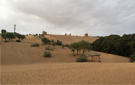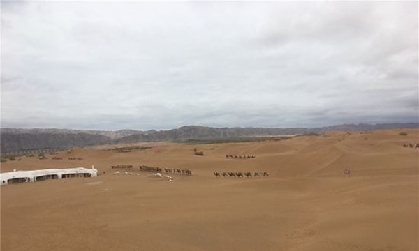 傍晚的腾格里沙漠风沙大、天很冷,我们被冻得索索发抖。在此坚持到沙漠里再没有第三个游客,我们也没有看到期待的“大漠日落圆”。只得乘坐最后一班(等待游客看日落)观光车,打道回酒店,回到我们那个“远方的家”。当天夜里,沙坡头也没有星空,我们的计划是“连续失守”。想想也罢,省去了夜间的幸苦也不错,也能一夜好觉到天明。
