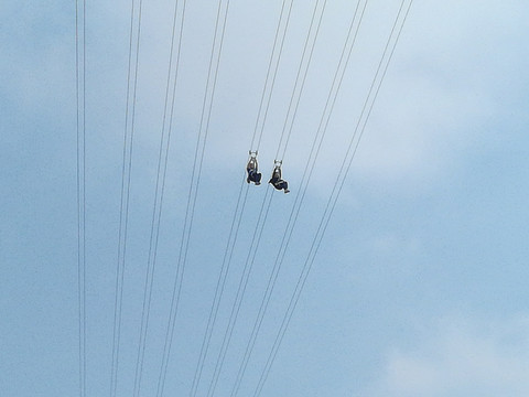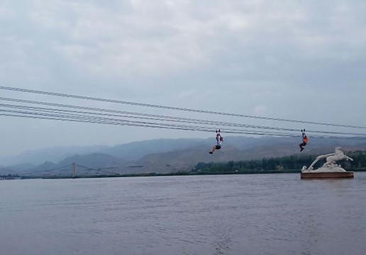 据说,中国国际滑沙中心就设在沙坡头,这里有黄河滑翔翼、黄河飞索、黄河蹦极等惊险刺激的运动。其中的黄河飞索被称为“天下第一索”,它全长820米,落差54米,滑行速度8米/秒以上。沙坡头的黄河飞索为往返式滑索,也是目前在滑行过程中,唯一可以自由转动身体的凌空滑索。它的的确确属于勇敢者,而我们也的的确确算是个旁观记录者。
